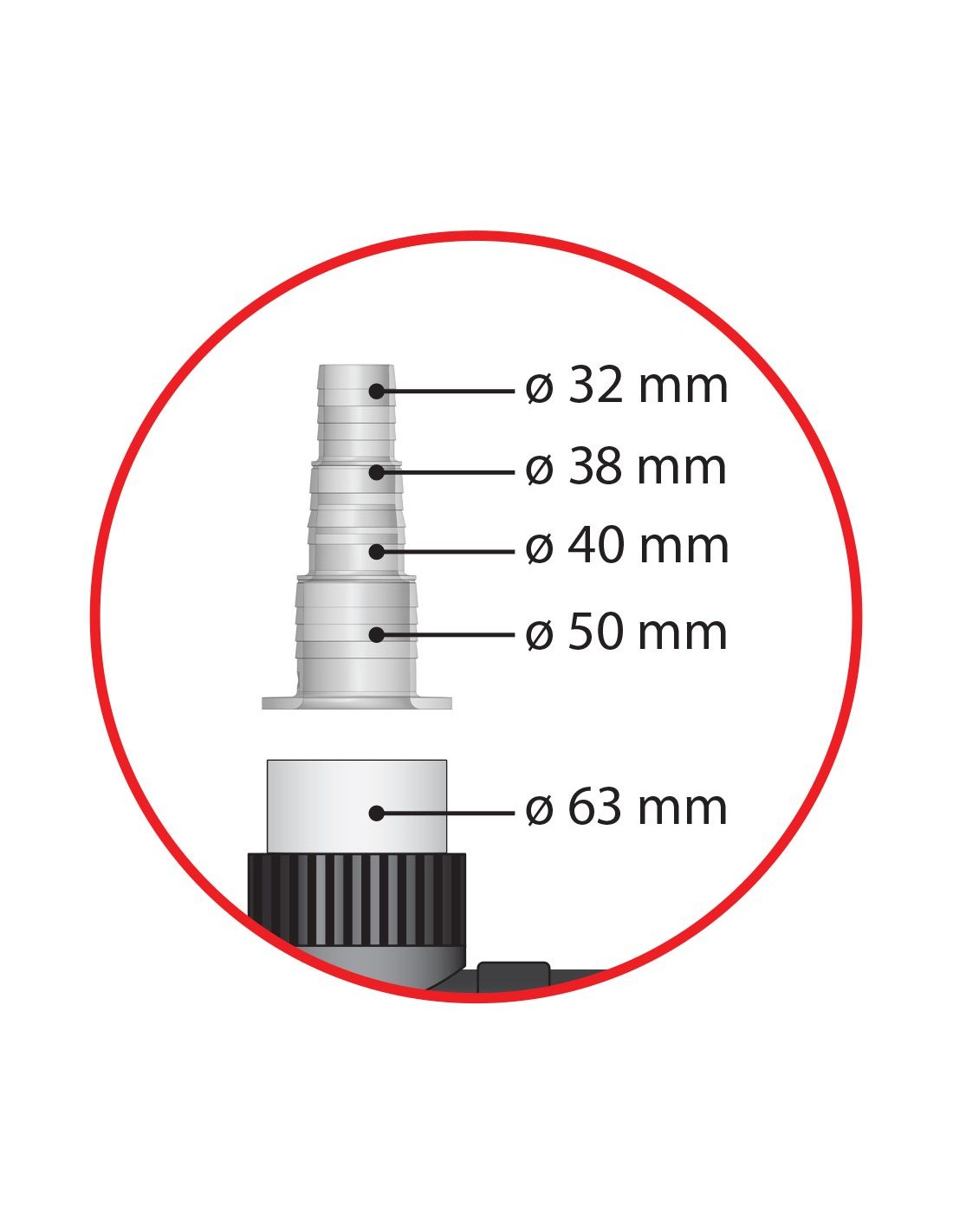 - 2 manguitos escalonados para manguera (Ø 32, 38, 40, 50mm)